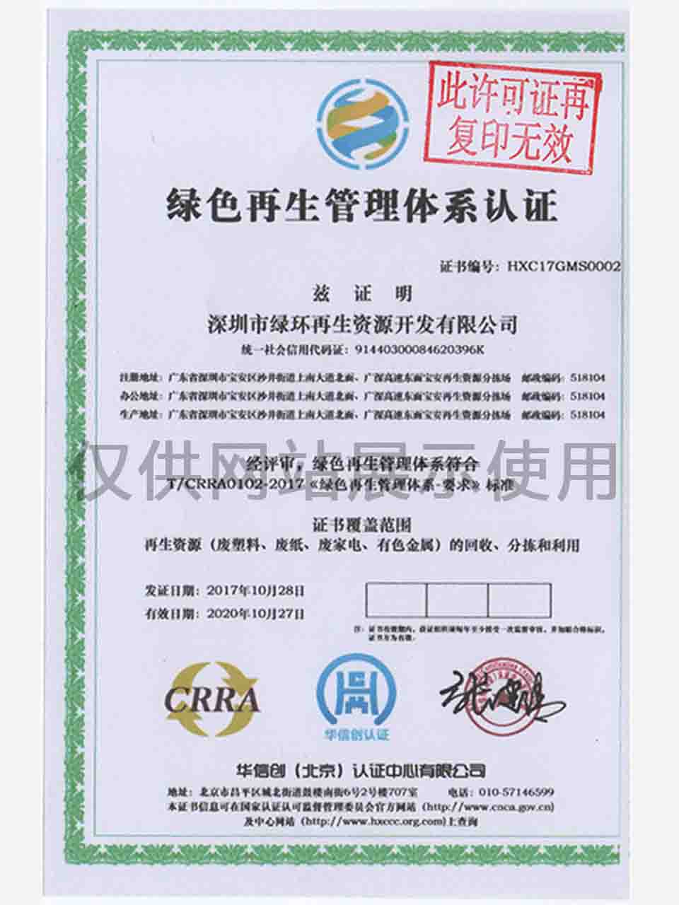 绿色再生管理体系认证