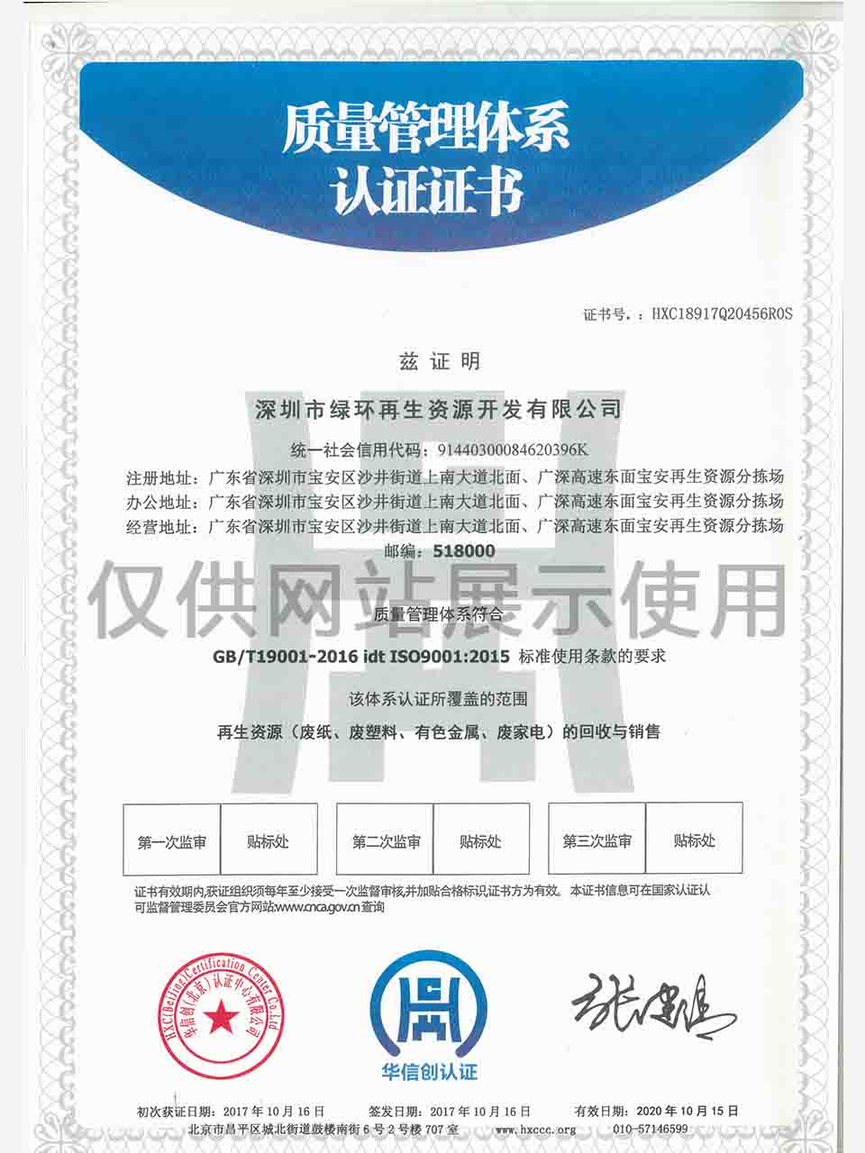 质量管理体系认证证书